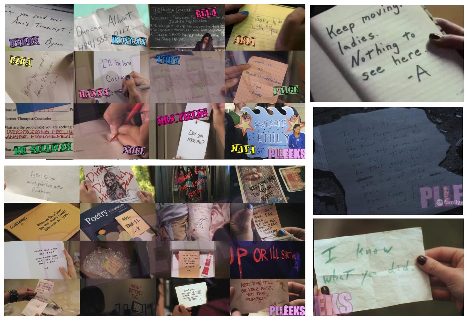 @XimeG nos envió un twit que decía: "Mensajes de -A similares a las letras de Aria, Byron, Toby y Ezra?" - junto a una imagen (hecha por la página PLLeeks). -¡Gracias Xime!